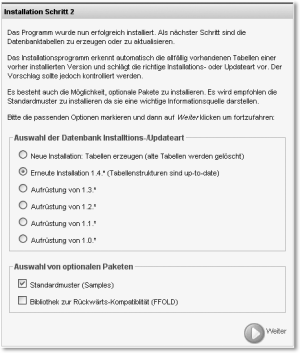 Lassen Sie die Sample Forms ausgewählt, und gehen Sie mit Continue zu Step 3. Hier wird Ihnen mitgeteilt, dass die Installation erfolgreich verlaufen ist, und Sie gelangen wiederum über Continue zu Step 4, dem eigentlichen Konfigurationsdialog der Facile Forms, auf den Sie auch nach der Installation immer wieder zugreifen können (Abbildung 11.2).